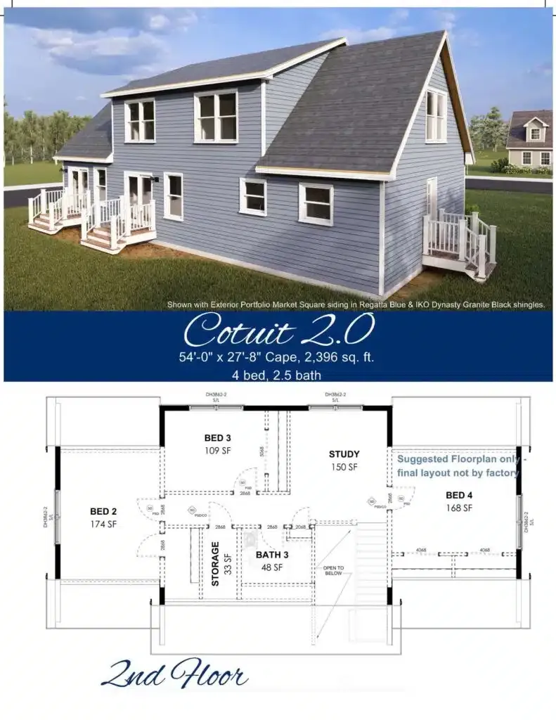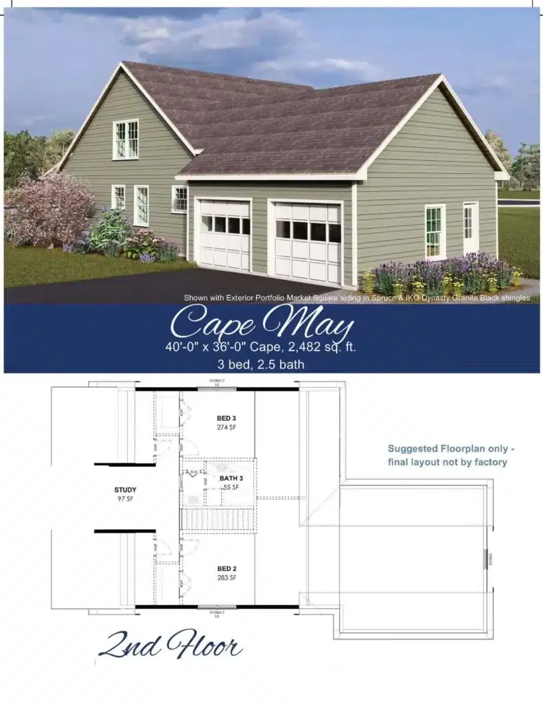 This is a large cape style home. With the kitchen tucked into the corner of the home near the garage entrance for convenience, this home offers a great use of space. You can go from the kitchen into the family room or through the pantry/laundry room which flows into the dining room. This home also has the future potential of 2bedrooms, a full bathroom and a study on the second floor.